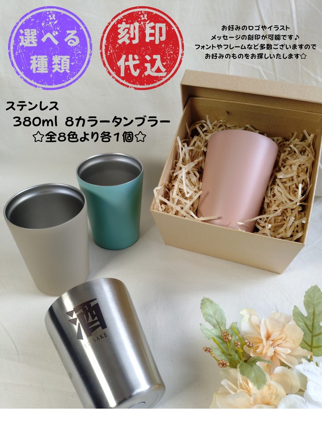 化粧箱&刻印入り ステンレス 380mlタンブラー 8色☆文字・記念日・ロゴ・イラストなど刻印いたします☆