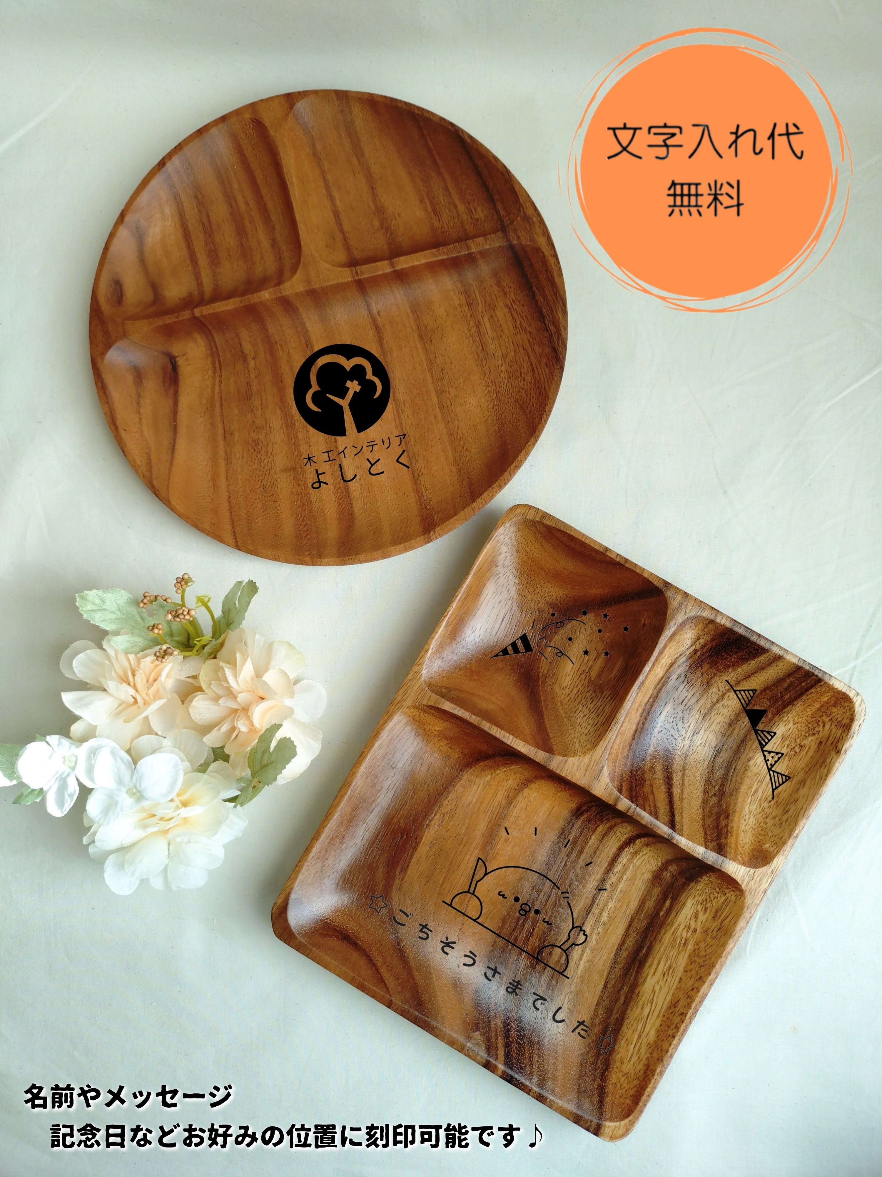 仕切り付きランチプレート カフェプレート オリジナルのロゴも可能☆お好みのイラストをお好みの位置に刻印☆