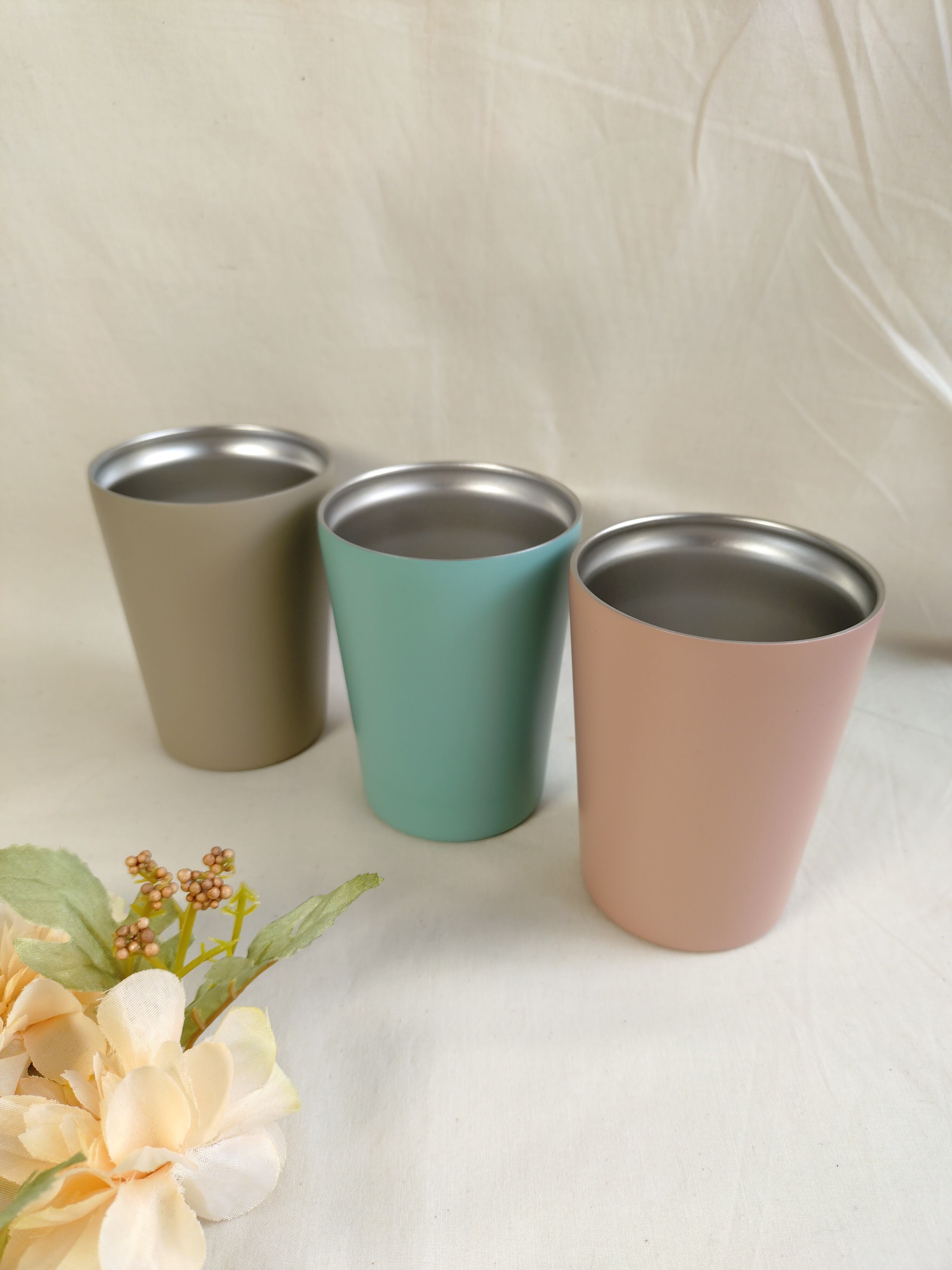 温かい物、冷たい物の飲みごろ温度を保ちます。熱が外側に伝わりにくいので、温かいものを入れても外側が熱くならず、冷たいものを入れた場合は結露しにくくなっています♪