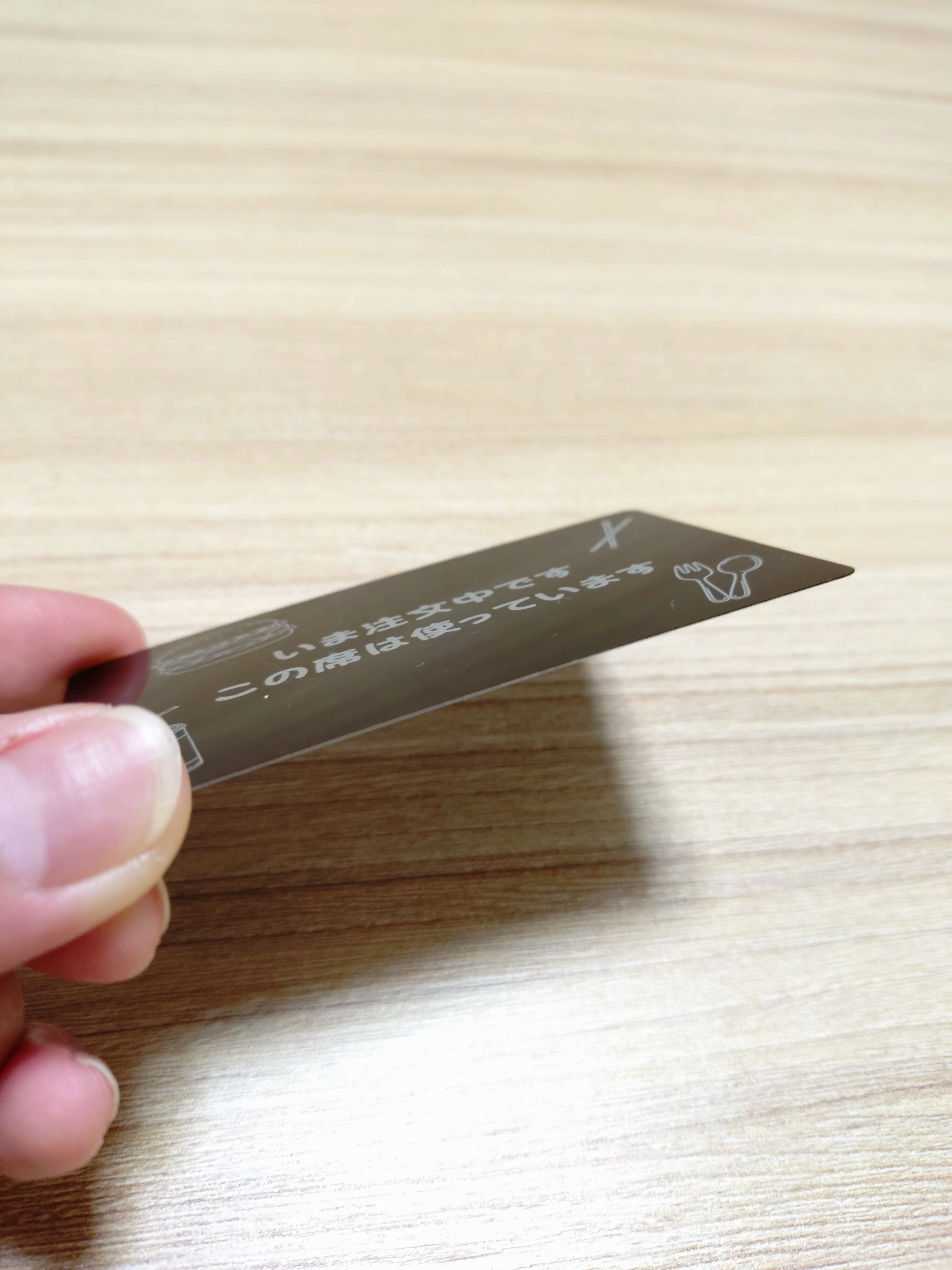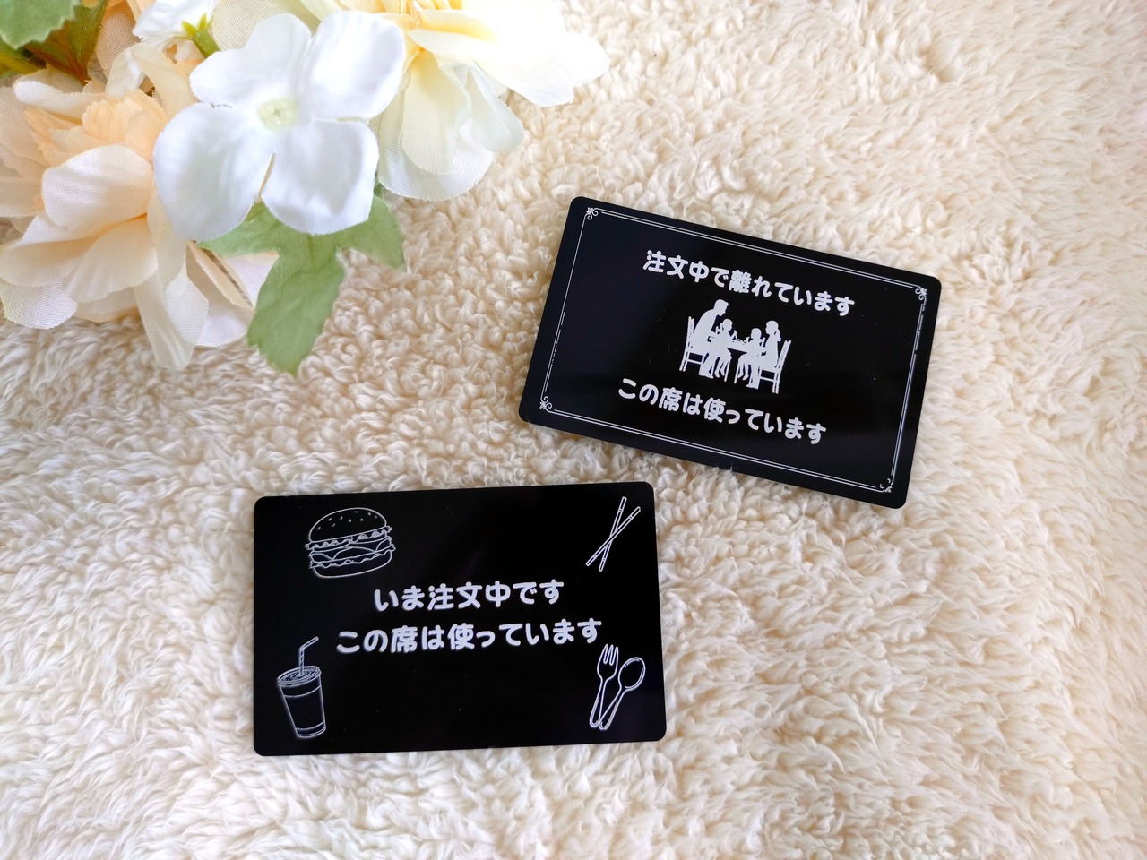 お店のメニュー表や、ショップカード、名刺、フードコートなどの席確保に財布に一枚入れておいたり、クレジットカードやポイントカードなどに張り付けて自分だけのオリジナルの一枚にしたり…