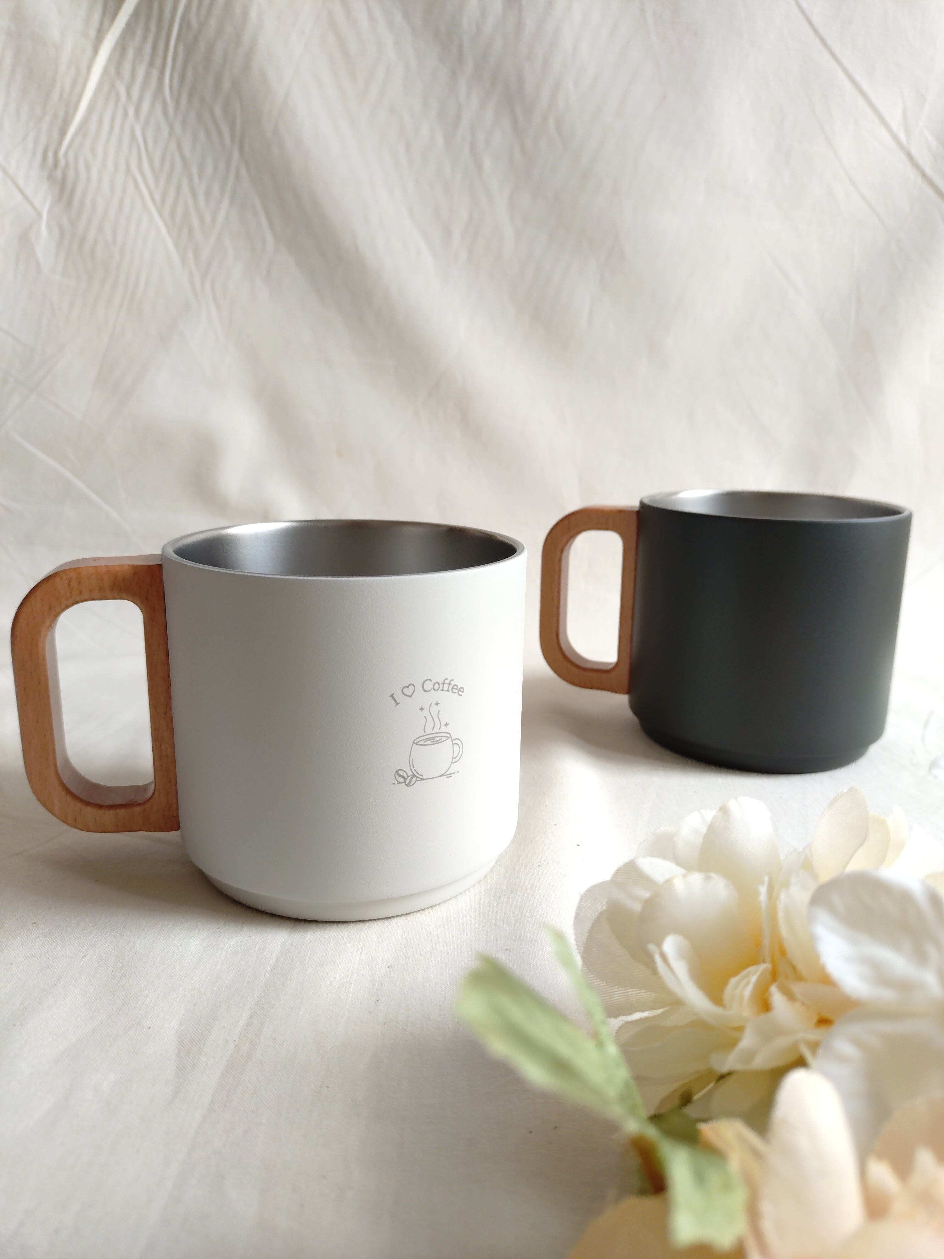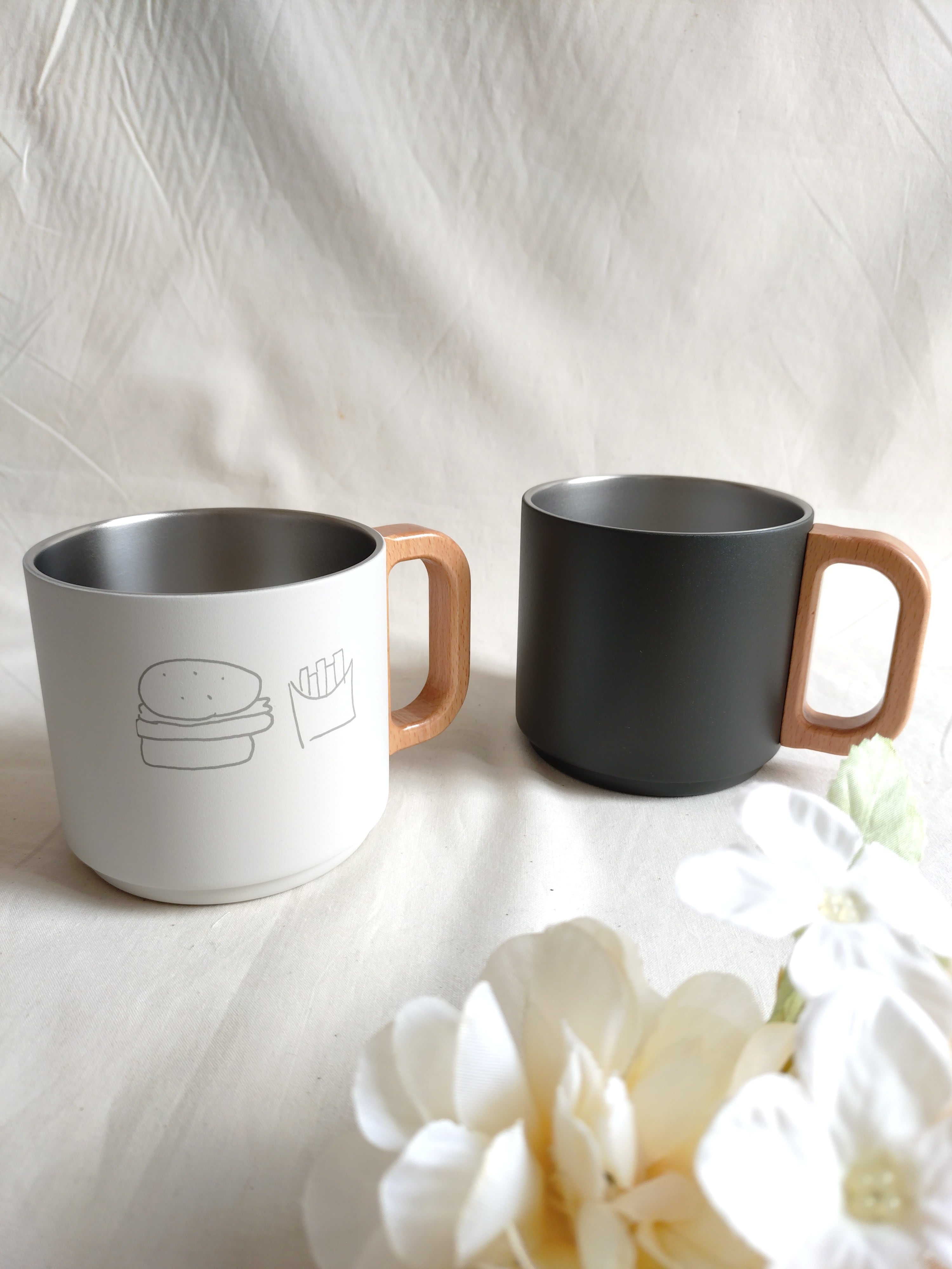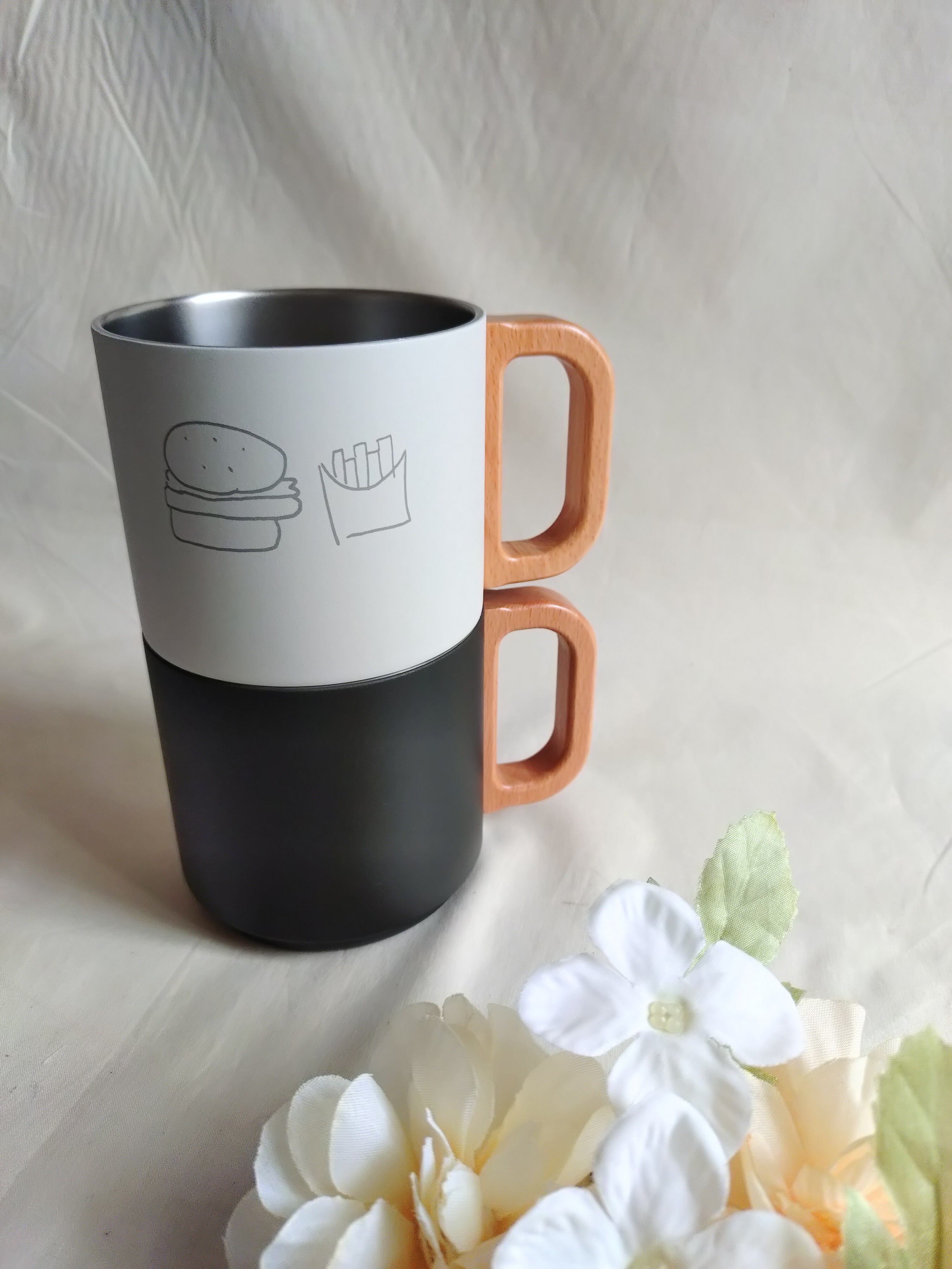 木製ハンドル ステンレスマグカップ 350ml☆文字・記念日・ロゴ・イラストなど刻印いたします☆