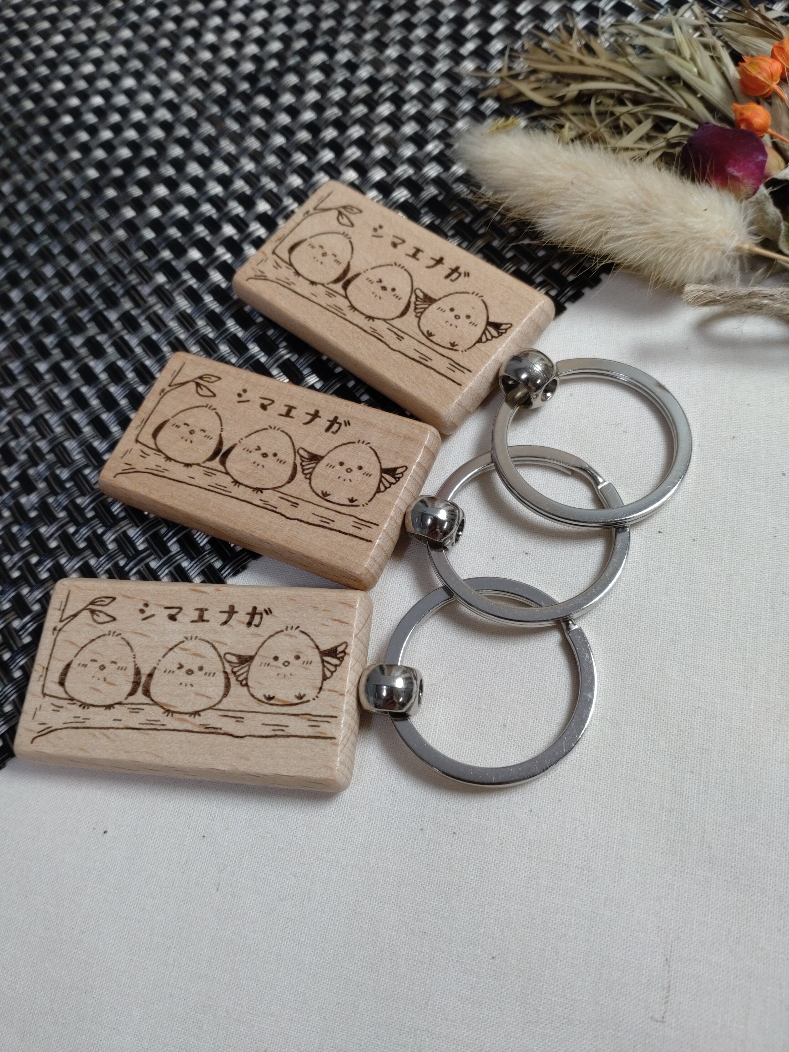 ☆3個以上で送料&裏面刻印無料☆仲良しシマエナガ 名入れ木製キーホルダーキーホルダー 入園&入学 ナンバープレート