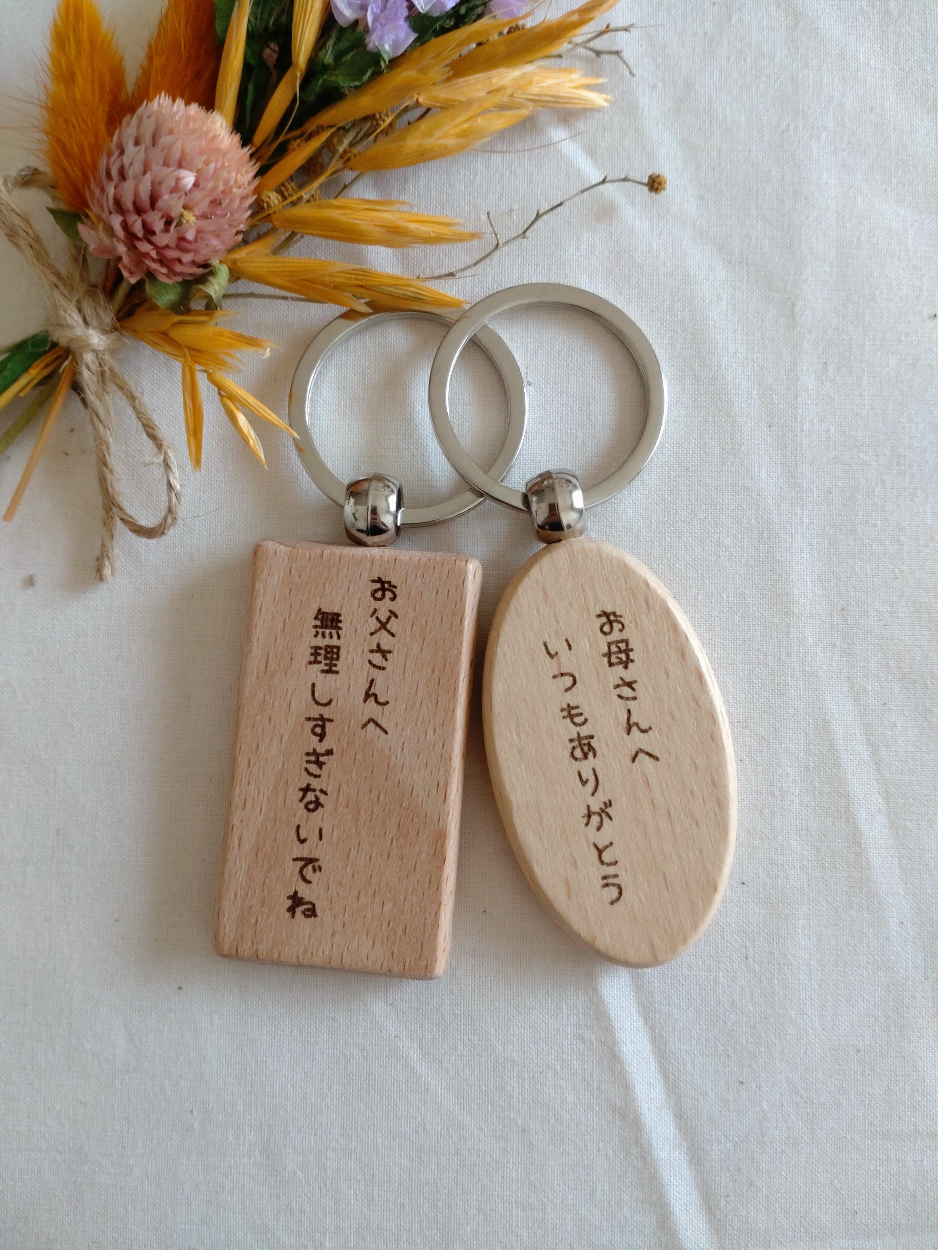 木製キーリング型 御守 オリジナルでコメント刻印☆お子様の書いた似顔絵やイラストも刻印可☆